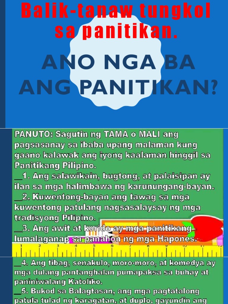 BUGTONG binubuo ng isa o PALAISIPAN- Ito ay mga KARUNUNGANG BAYAN tanong na kadalasay nakakalito dalawang taludtod na maikli na sa mga tagapakinig. Tell us what you think abut this post by leaving your comments below. Ito ay mga palaisipan na ang mananalo o makakakuha ng premyo ay ang makakahula ng palaisipan.