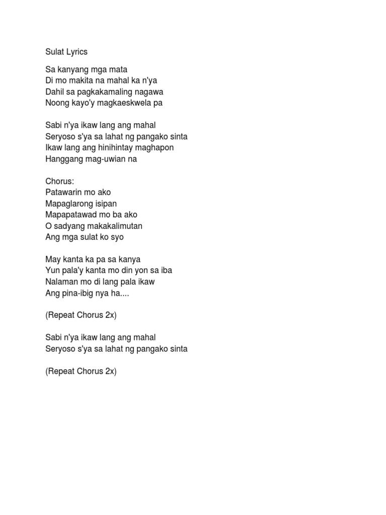 English synchronize let me think impulsiveness well thought out. Contextual translation of mapaglarong isipan into English. Intro G Am Bm C G Am Bm C Verse 1 G Am Bm C G Am Bm C Sa kanyang mga mata di mo nakita na mahal ka niya G Am Bm C Dahil sa pagkakamaling nagawa G Am D C Nung kayoy magka-eskwela pa Instrumental G Am Bm C x2 Verse 2 do 1st stanza chords Sabi nia ikaw ang mahal Seryoso siya sa lahat ng pangako sinta Ikaw lang.