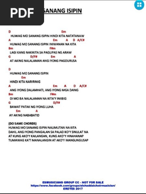 D Bm A7 D D Huwag mo sanang isiping Em Di Kita natatanaw A Huwag mo sanang isipin Em D D Fm Bm Iniwanan na Kita Bm Lagi kang nakikita Fm Sa paglipas ng araw G Em At Aking nalalaman A Asus A Ang iyong pagdurusa D Huwag mo sanang isipin Em hindi Kita naririnig A Ang iyong dalamhati Em D D Fm Bm Ang iyong mga daing Bm Di mo ba nalalaman. Performed by Martin Connie CailesWords Music by Ricky SanchezCopyright 2005 Ricky Sanchez All Rights Reserved. About Press Copyright Contact us Creators Advertise Developers Terms Privacy Policy Safety How YouTube works Test new features Press Copyright Contact us Creators.