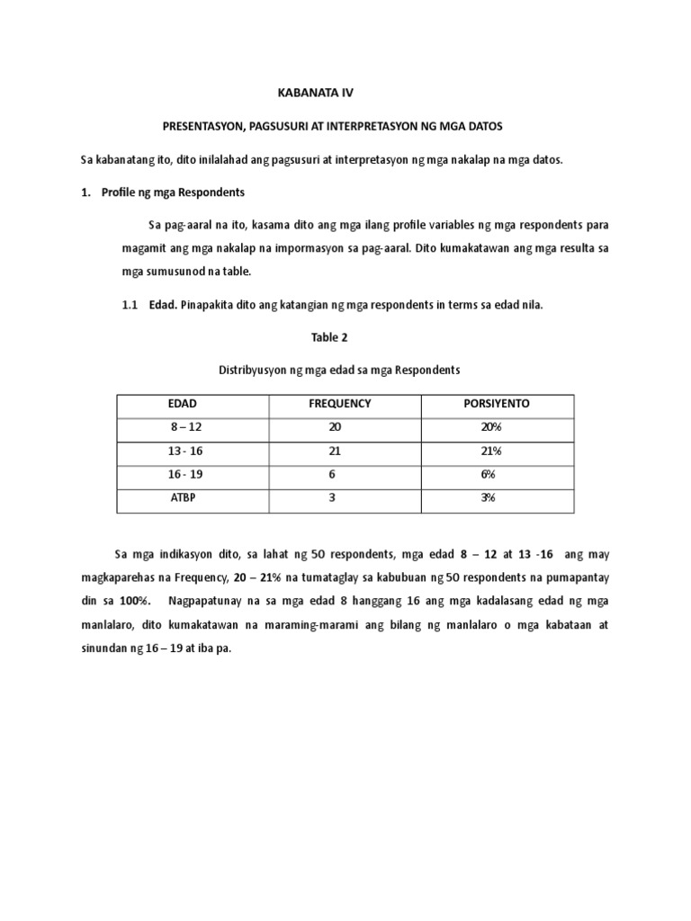 Doc Kabanata Iv Presentasyon Pagsusuri At Interpretasyon Ng Mga Datos Jake Lozano Academia Edu