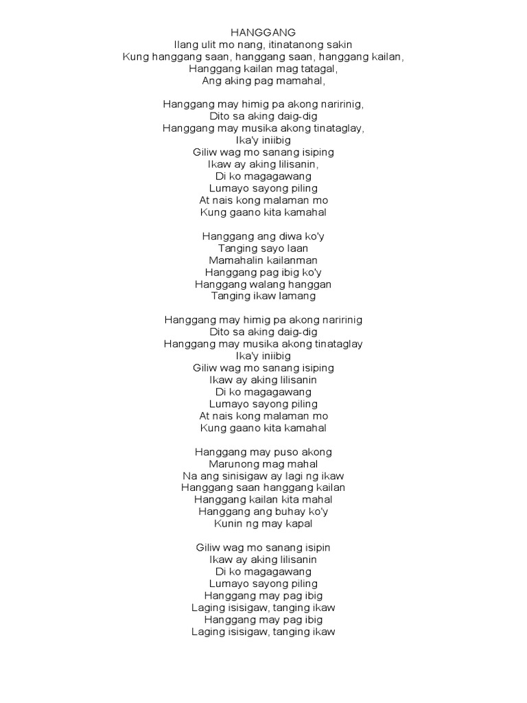 The Loved Flock Music Ministry Cabanatuan Chapter posted a video to playlist Songs at posted a video to playlist Songs at. At nais kong malaman mo. Giliw wag mo sanang isiping Ikaw ay aking lilisanin Di ko magagawang Lumayo sayong piling At nais kong malaman mo Kung gaano kita kamahal Hanggang may puso akong Marunong mag mahal Na ang sinisigaw ay lagi ng ikaw Hanggang saan hanggang kailan Hanggang kailan kita mahal Hanggang ang buhay koy Kunin ng may kapal Giliw wag mo sanang isipin Ikaw.