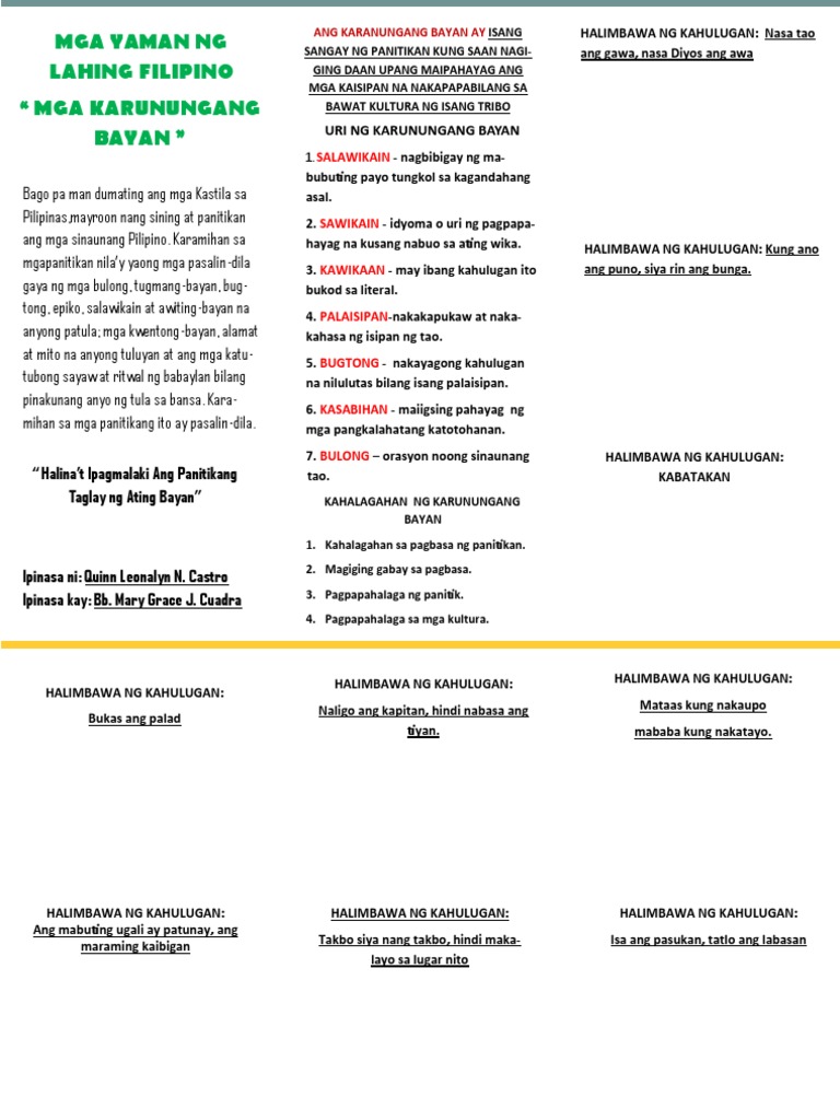 Halimbawa Ng Karunungang Bayan Kahulugan At Mga Halimbawa