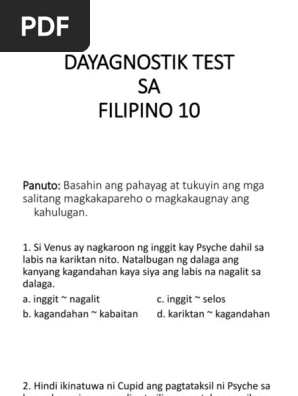 Diagnostic Test In Filipino 10 Pdf